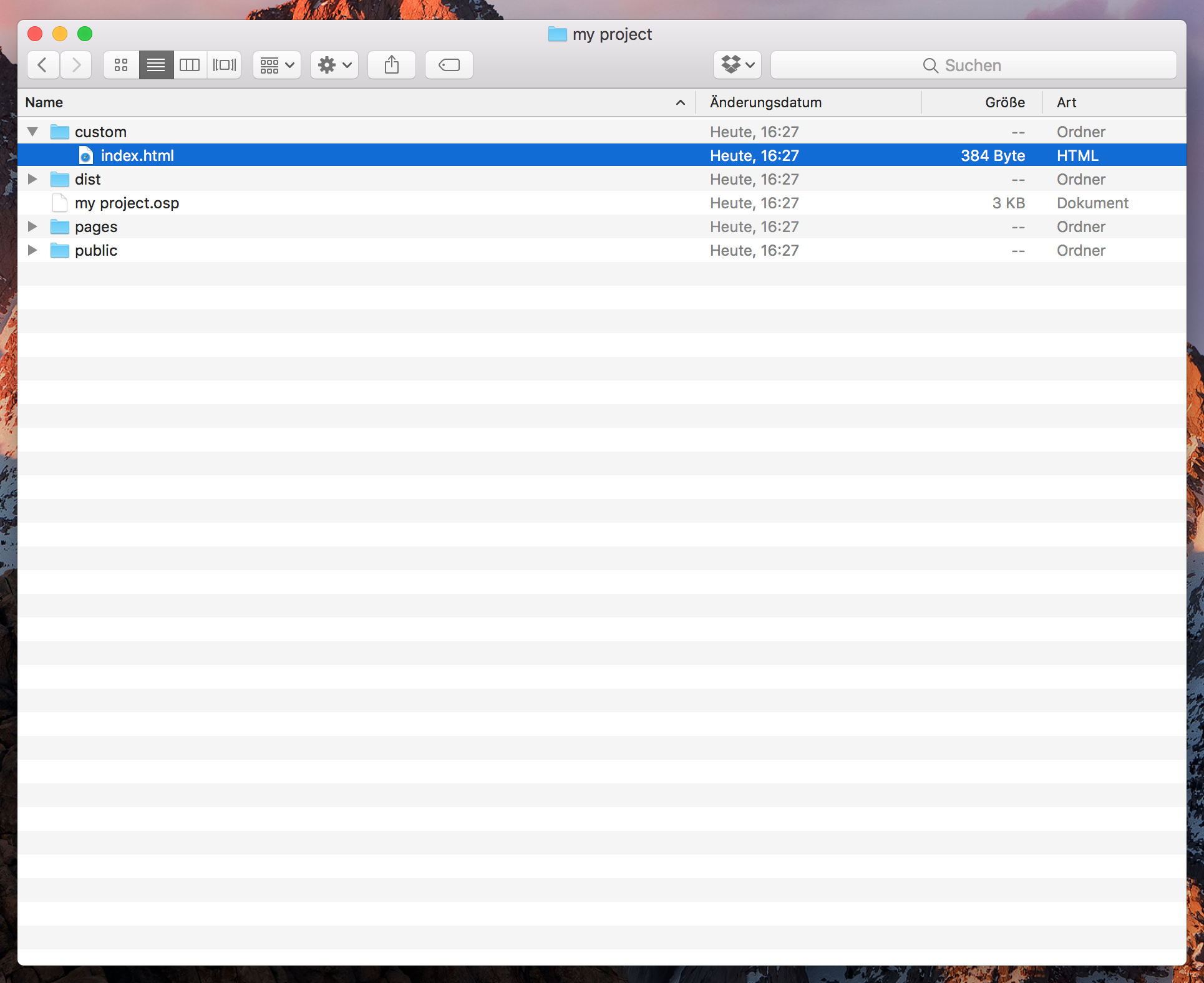 You can customize the HTML file by creating custom/index.html in the project's root directory. Before creating this